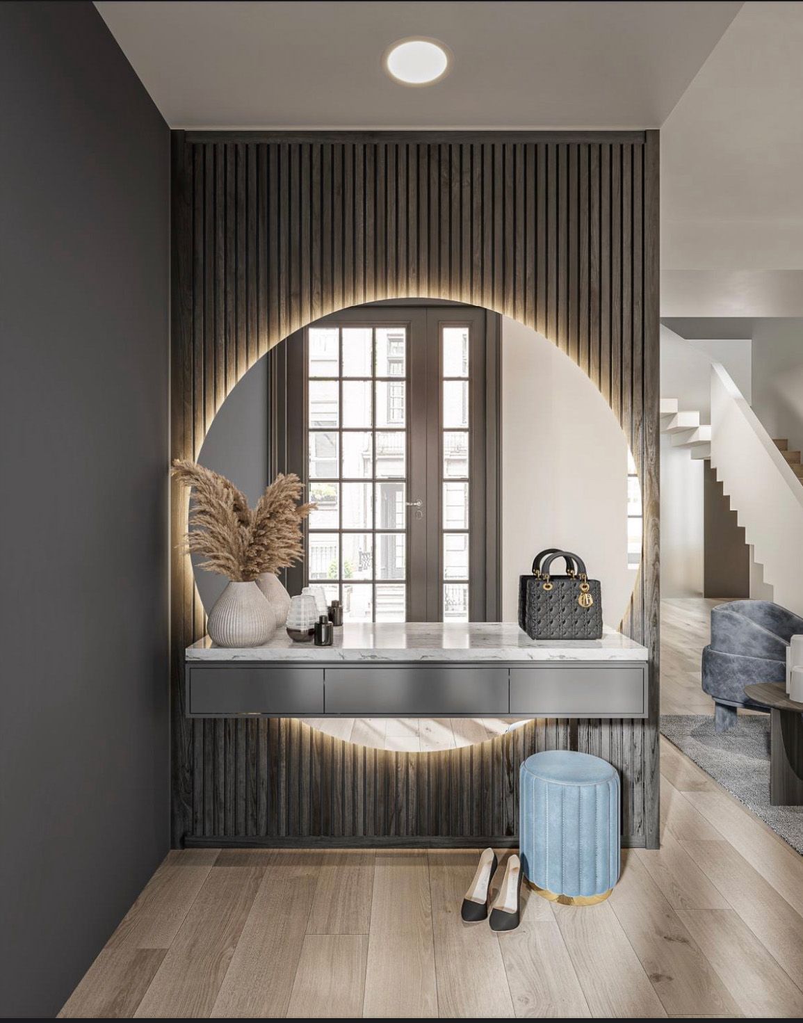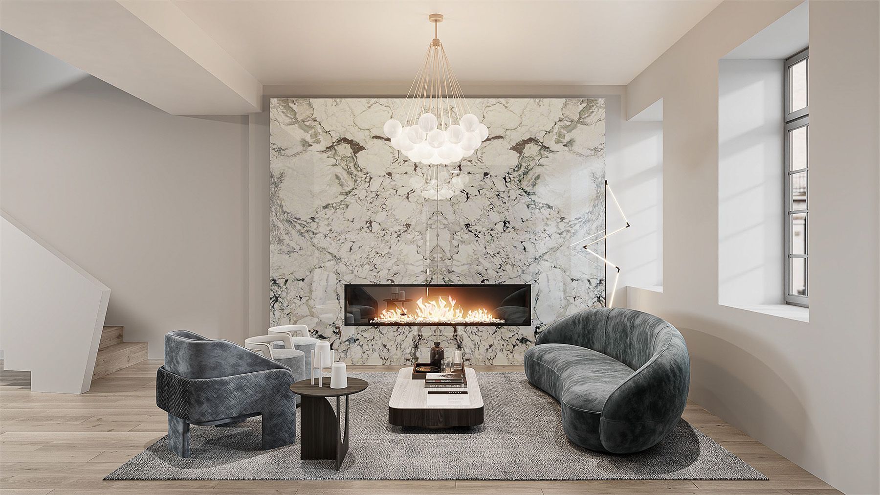 Upon entering the elegantly designed foyer, one is greeted by the warm ambiance of this beautiful brownstone. You are welcomed by a mesmerizing 30’ stairwell chandelier by Juniper that spans the entire height of the house, beginning at the roof & ending just above the kitchen table. Adjacent to the entrance, a powder room awaits, while a vast built-in wine wall stands between the powder room and the elevator. This wine wall – artfully exposed, illuminated, and refrigerated – complements the kitchen and exudes dynamic allure. Conveniently, the cabinets on both sides of the wine wall offer storage for coats and jackets. Further inside, a cozy sitting room area beckons, complete with an inviting electric fireplace.